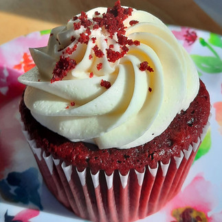 Red Velvet cupcakes come standard with butter cream and cake crumbles and/ or sprinkles.
